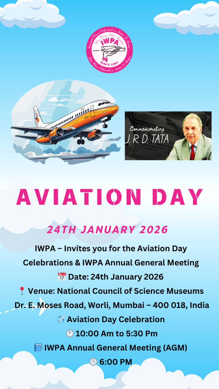 IWPA invites you to join the Aviation Day Celebrations, honouring the legacy and contribution of J. R. D. Tata to Indian aviation, followed by the IWPA Annual General Meeting.